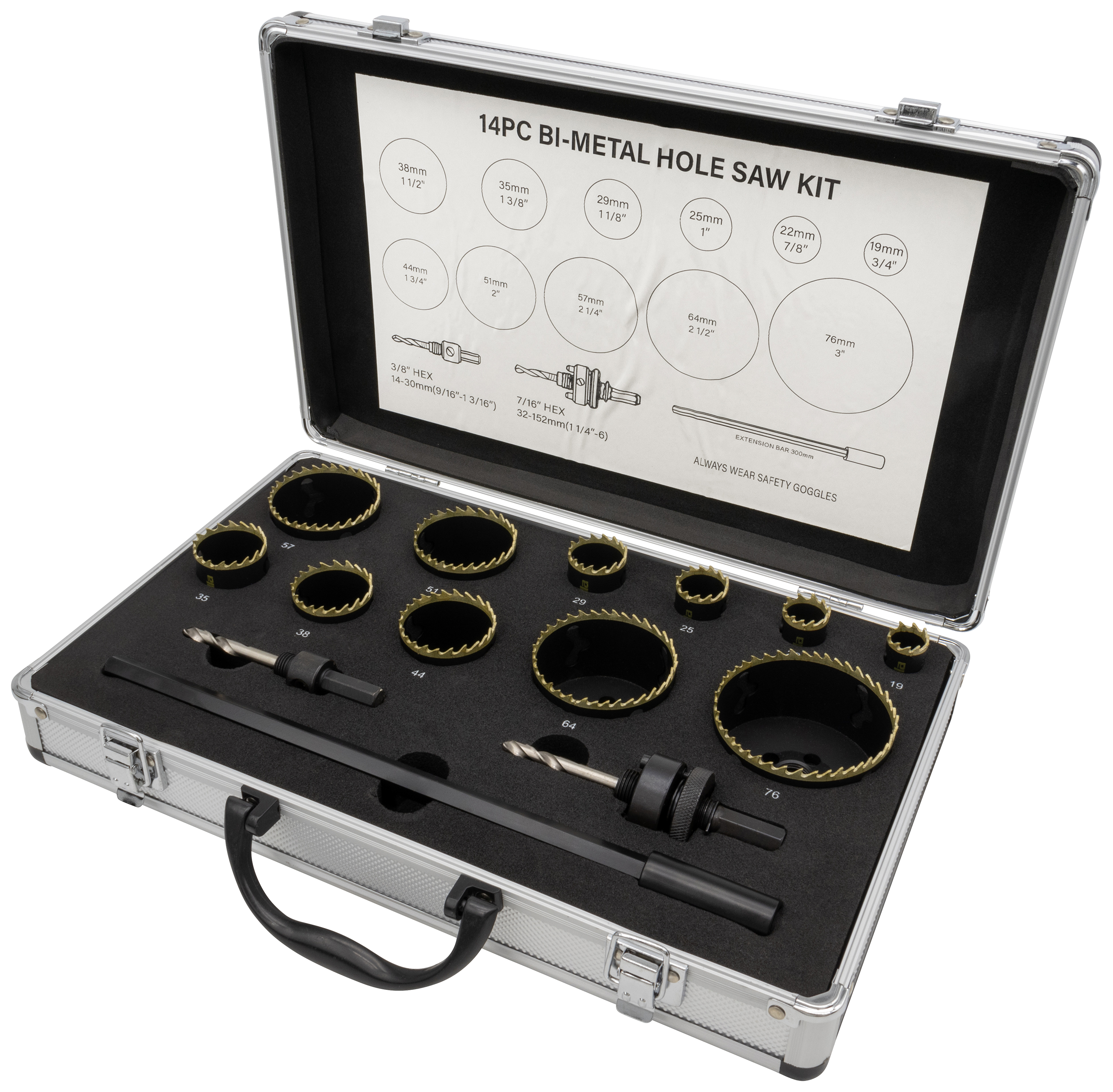 Diesella Hulsavesæt(14 dele) Ø19-76 mm, HSS Bi-Metal M42 med 8% cobolt