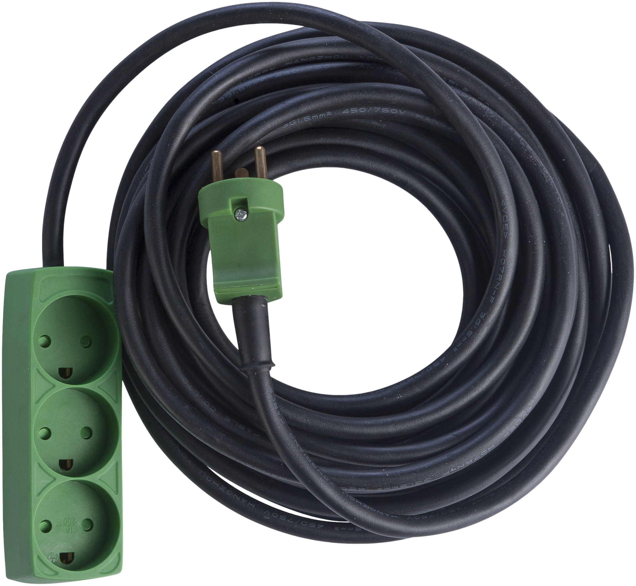 Forlængerkabel 10 mtr. m/jord, Neopren slagfast stik + 3 dåse 230V