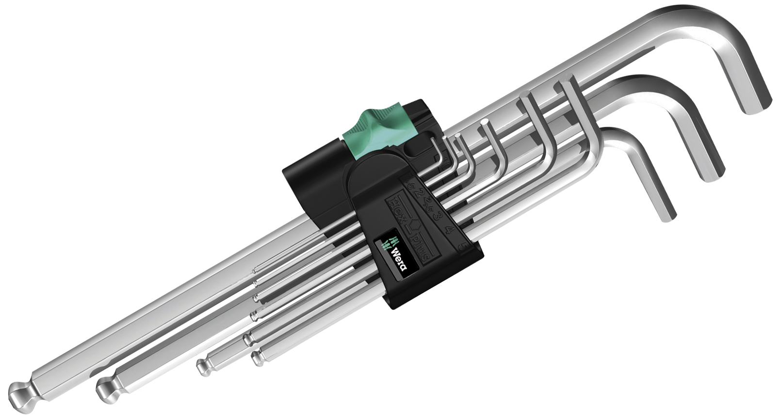 Kugleunbrakonøgler lang (blank) i sæt, WERA 950 PKL/9 SM N HEX+ 1,5 - 10 mm.