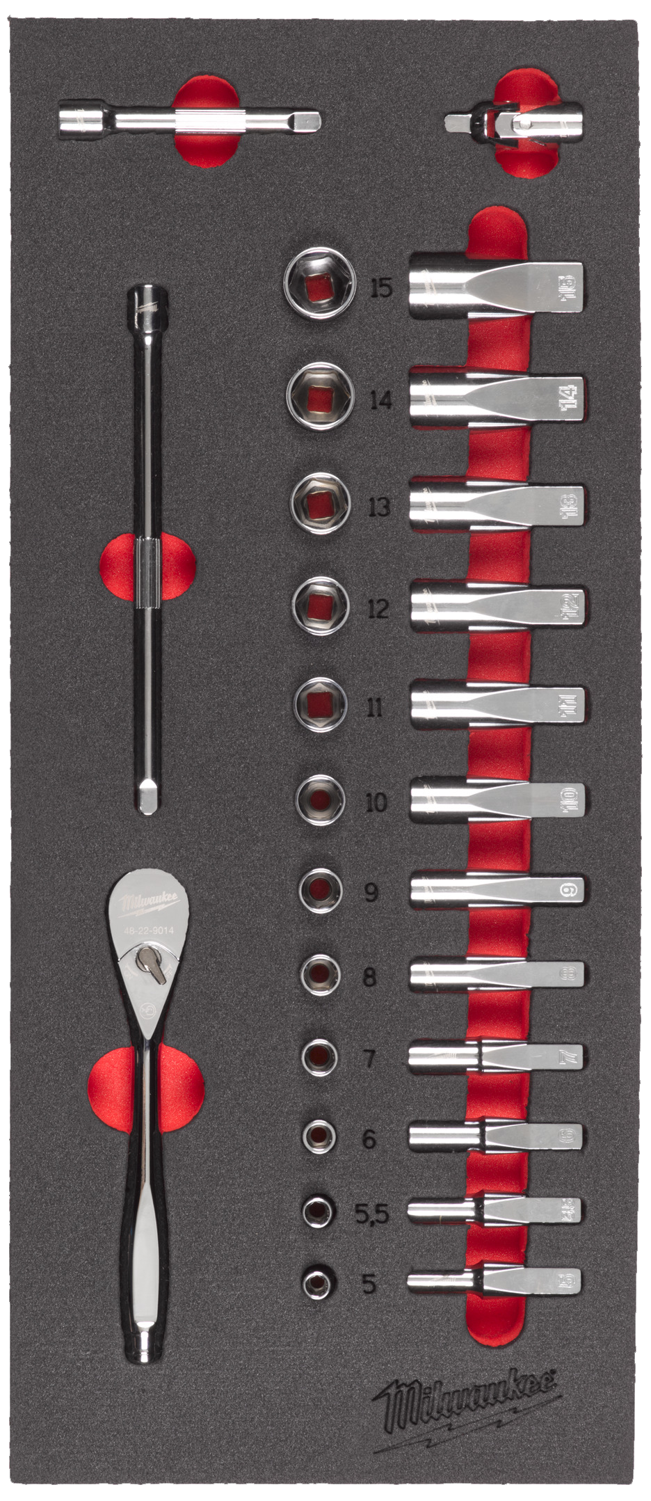 Milwaukee 1/4" topnøglesæt 24 dele, Indsats t/værkstedvogn