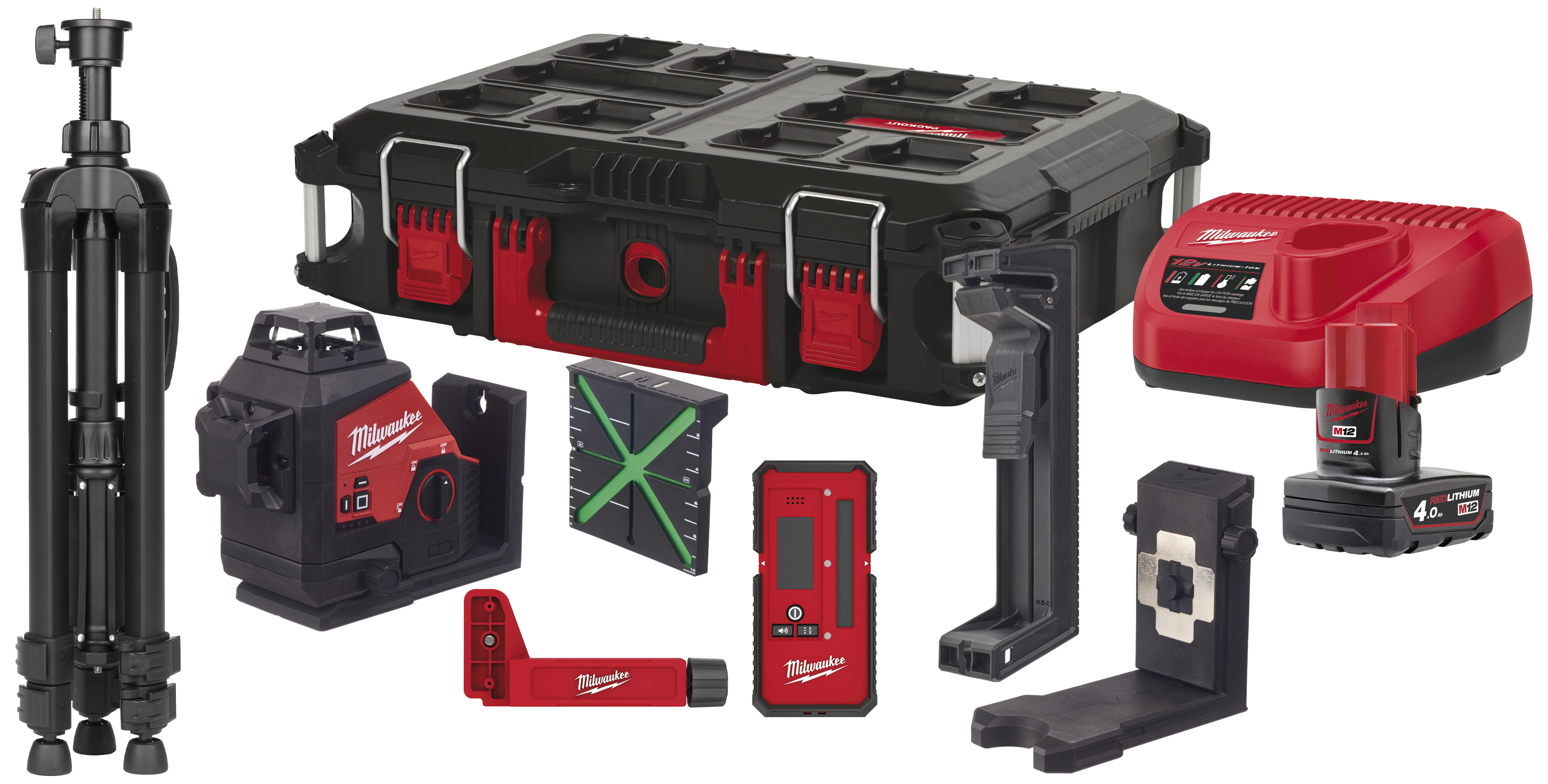 Milwaukee 3-planslaser, M12 3PLKIT-401P