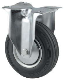 Transporthjul m/topplade fast, 100 mm massiv sort gummihjul (70 kg.)