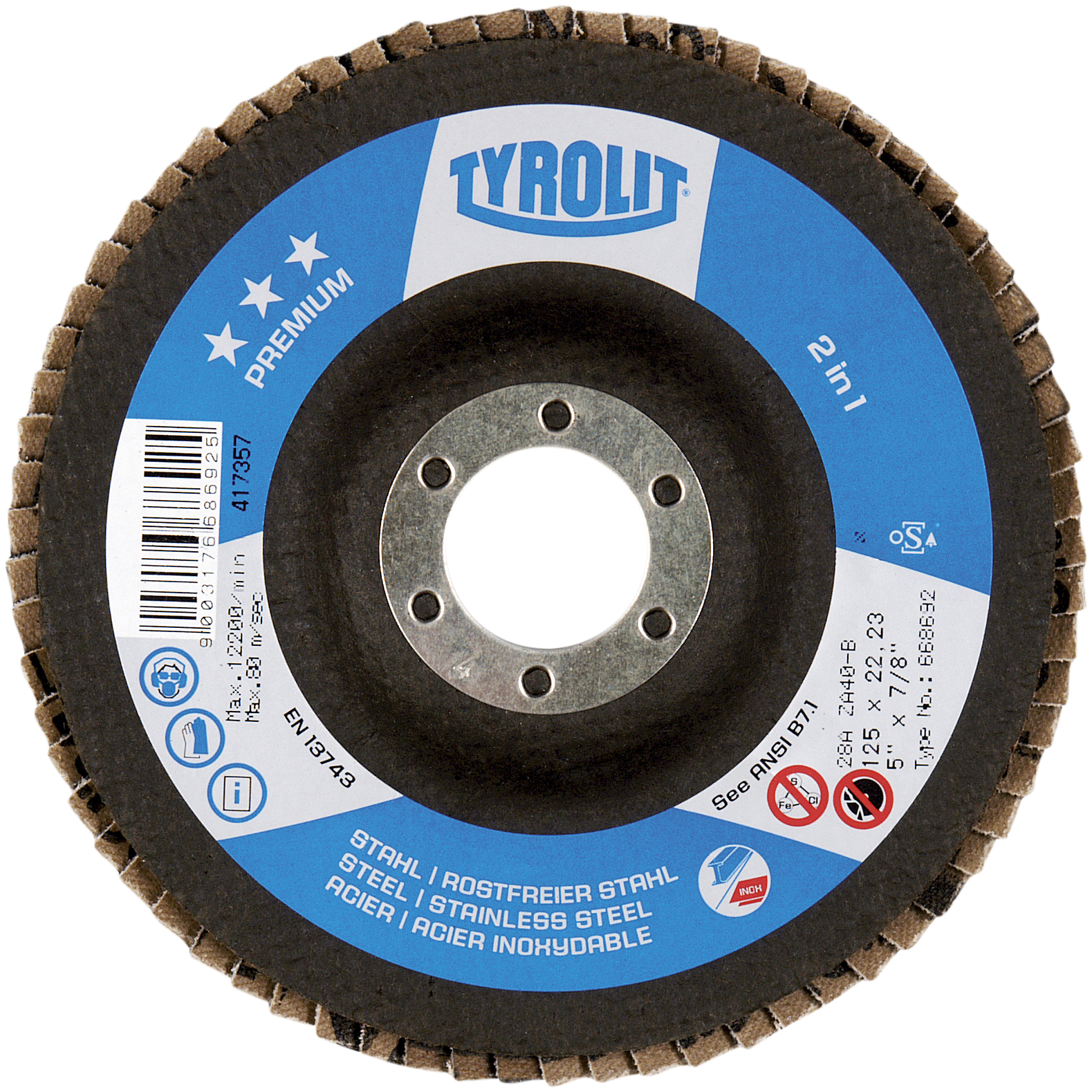 Tyrolit lamelslibeskive, 125 x 22,2 ZA 40B til rustfri